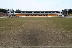 After five years of planning, construction of a completely renovated stadium started in February 1999.[3] To finance the stadium, a limited company, Åråsen Stadion AS, was established, and owned by the club, rather than by the limited company which runs the elite team.[4] Only the East Stand from 1978 was kept. In 2000, new grass was laid on the pitch, replacing the original grass from 1950. This included the installation of under-soil heating and an automatic irrigation sprinkler system.[2] The new pitch had the dimensions 105-by-65-meter (115 by 71 yd).[5] Combined, this cost NOK 12 million.[2] The first new stand to be completed was the West Stand, which opened ahead of the 2000 season. In addition to luxury boxes, it consists of 6,500 square meters (70,000 sq ft) of commercial property, including a car dealer, a medical centre and a restaurant.[6]
