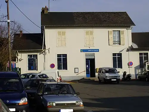 Étréchy is a railway station in Étréchy, Essonne, Paris, France. The station was opened in 1843 and is on the Paris–Bordeaux railway. The station is served by Paris's express suburban rail system, the RER. The train services are operated by SNCF.