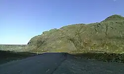 The tuya is slightly elongated in the direction of the volcanic fissure systems of Reykjanes, i.e. southwest to northeast.[11]
