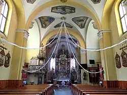 The parish church in the town is dedicated to Saint Oswald. It is a Neo-Romanesque building that was erected in 1868 after the old church burned down in a fire.[5]