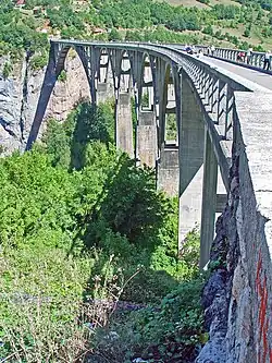 The Đurđevića Tara Bridge (Cyrillic: Мост на Ђурђевића Тари, pronounced [dʑǔːrdʑɛv̞iːtɕaː târa]) is a concrete arch bridge over the Tara River in northern Montenegro.