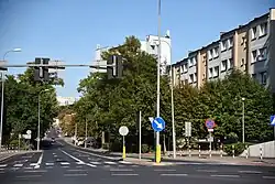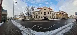 Świętojańska Street was laid out in the mid-18th century. Its name comes from the statue of Saint John of Nepomuk, which stood by the bridge over the Biała river. This street, or rather a road, along which there were no buildings, was lined with a row of linden and aspen trees. It connected Nowe Miasto (Warszawska) with the Solnica route leading towards Zabłudów (currently Mickiewicza Street), and then through Wojszki and Granne to Warsaw. Its perspective from the side of Nowe Miasto was closed by a chapel with the passion of the Lord Jesus, built in the 18th century.[1] In the 19th century, the name Prudska (from the Russian word prud which stands for pond) was used to designate this street. In the second half of that century, textile factories began to be established near the river. At the turn of the 20th century, on the section between Warszawska and Mickiewicza streets, there were factories of Polak, Ram, Filipp, Suraski, Aleksander Kronenberg, Mordechaj Głaz, Jankiel Kotlar, Izaak Liwerant, Szymon Okoń, Szloma Słucki, Kalaman Winiar, Ajyzk Zilberberg and Samuel Pines. In the upper part of the street, leading to Zwierzyniec at the exit of Podleśna Street (then Zwierzynicka), there was a horse tram depot. In the interwar period, the character of this street changed with the construction of houses for the civil servants' colony and the establishment of nearby plantations. In 1940, the Soviet authorities changed the name of the street to Komintern. In 1942, the Germans called it Kantstrasse. In the years 1949–1990, it was called Marcelego Nowotki.[2]
