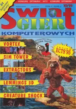 Świat Gier Komputerowych (English: Computer Games World) was a Polish video gaming magazine. Its first issue was released on 14 December 1992 as an addition to the Amiga magazine Amigowiec (deemed the 8-page 0th issue).[1] The permanent editorial team consisted of about 15 people. The first editor-in-chief was Mirosław Domosud, but he was replaced by Piotr Pieńkowski, who held this position until the paper was discontinued. It was intended mainly for older players, written in a more formal style than competitors such as Top Secret and CD-Action. In February 1997, the 50th issue was issued, while April 2001 saw the hundredth issue be published. The magazine celebrated its tenth anniversary in February 2003, being the only such magazine on the market to reach this milestone. The last issue appeared in July 2003 as a double. The decision was due to the unsatisfactory sales of the magazine, around 50,000 copies per month.[2] After its dissolution, an attempt was made to revive the paper as Nowy Świat Gier Komputerowych, however this only lasted for two months.[3][4]