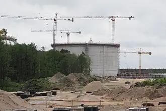 Discussions about the project started in 2006. The project was originally developed by PGNiG through its subsidiary Polskie LNG S.A. In January 2008, SNC-Lavalin was chosen for the front-end engineering design.[3] The engineering, procurement and construction contract was signed with a consortium of Saipem, Techint, Snamprogetti, and PBG.[3][4] Construction started in March 2011.[5] The first LNG delivery to the terminal was expected on 11 December 2015.[6] After creation of Gaz-System and its separation from PGNiG, the newly created company took over the ownership of Polskie LNG S.A. The terminal was inaugurated by prime minister Ewa Kopacz on 12 October 2015.[7] The gas carrier has delivered the first order on 11 December 2015.[1]