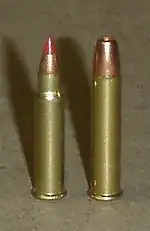 The .17 HMR round is similar to rounds developed by dedicated rimfire wildcatters who worked to create a rimfire cartridge with an exceptionally flat trajectory. These wildcatters were seeking to match the ballistics of the obsolete 5mm Remington Rimfire Magnum, which was made from 1970 to 1974, and was to that point the fastest rimfire cartridge ever produced.[5] With 5 mm diameter barrels and bullets being virtually unavailable at the time (the 5mm RMR was the last commercial 5 mm round until the 2004 release of the centerfire .204 Ruger), the commercially available .17 caliber became their bullet of choice. The .22 Winchester Magnum Rimfire was the logical parent case, rather than the 5mm RMR (with its unique case head size, which requires a significantly different bolt and magazine) because it was commonly available, and it is a far larger and stronger case than the next largest, the .22 Long Rifle. The .17 caliber wildcats not only met but far exceeded the 5mm RMR's velocities and flat trajectory. The accuracy of these cartridges was also quite good. However, the downrange energy of the 5mm RMR is superior to both .22 WMR and .17 HMR, so there is still potential in the 5 mm rimfire for wildcatters.[6]