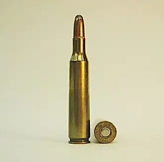 The .257 Roberts, also known as .257 Bob,[2] is a medium-powered .25 caliber rifle cartridge. It has been described as the best compromise between the low recoil and flat trajectory of smaller calibers such as the 5 mm (.22 in) and 6 mm (.24 in), and has more energy, but is harder recoiling, similar to larger hunting calibers, such as the 7 mm (.28 in) and 7.62 mm (.30 in).[3]