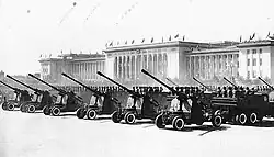 Anti-aircraft guns in the military parade before the Great Hall of the People.