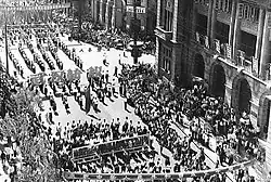 In Beijing, ten "great buildings" were constructed ahead of the celebrations. The most prominent of the ten was the Great Hall of the People.[4] On 26 September 1959, just a few days ahead of the anniversary, oil was discovered at Datongzhen.[5] Datong Town and the oilfields were renamed 'Daqing' ('Great Celebration'), in reference to the tenth anniversary celebrations.[5][6] Major parades were also organized in Shanghai, Chongqing, Guangzhou, Xi'an, Wuhan, Shenyang and Tianjin.[2]