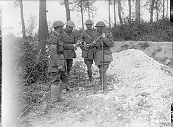 Brigadier General George Armytage (far right), commanding the 117th Infantry Brigade, and members of his brigade staff near Thiepval Wood, July 1916.