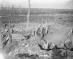 German trench at St Pierre-Divion with the Ancre in the background, after the fighting in November 1916.