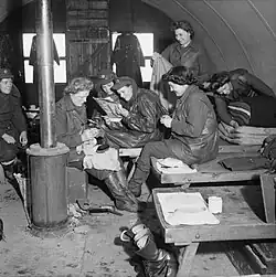 ATS women of a mixed HAA battery off duty in a Nissen hut, November 1944.
