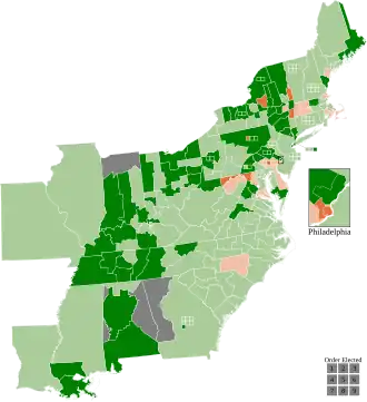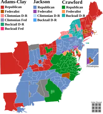 2. ^ Corresponds to the sum of Adams-Clay Federalists (15), Jackson Federalists (7), and Crawford Federalists (2), if the 1824 votes for President are used to categorize.[1]