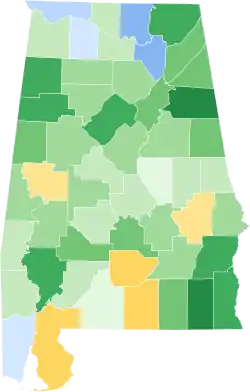 Barbour 1,715 72.52% 644 27.23% 6 0.25% 1,071 45.29% 2,365
