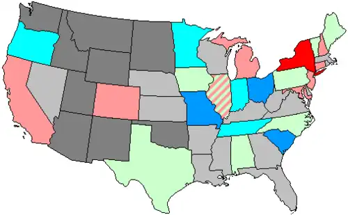 In 1845, Congress set a uniform nationwide date for choosing presidential electors.[2] This Act of Congress did not affect election dates for Congress, which remained within the jurisdiction of state governments, but over time, the states moved their congressional elections to this date as well. In this cycle, there were still 7 states with earlier election dates, and 1 with a later election date: