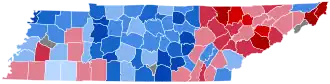 For over a century after the Civil War, Tennessee's white citizenry was divided according to partisan loyalties established in that war. Unionist regions covering almost all of East Tennessee, Kentucky Pennyroyal-allied Macon County, and the five West Tennessee Highland Rim counties of Carroll, Henderson, McNairy, Hardin and Wayne[3] voted Republican – generally by landslide margins – as they saw the Democratic Party as the “war party” who had forced them into a war they did not wish to fight.[4] Contrariwise, the rest of Middle and West Tennessee who had supported and driven the state's secession was equally fiercely Democratic as it associated the Republicans with Reconstruction.[5]