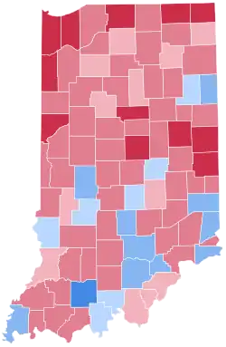 | Tippecanoe | 6,581 | 59.83% | 4,031 | 36.65% | 261 | 2.37% | 86 | 0.78% | 41 | 0.37% | 2,550 | 23.18% | 11,000 |