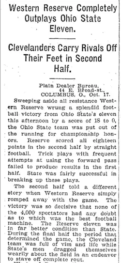 - ^ "Wash-Jeff's Downed By Western Reserve". The Pittsburgh Sunday Post. Pittsburgh, Pennsylvania. October 4, 1908. p. 13. Retrieved September 17, 2021 – via Newspapers.com