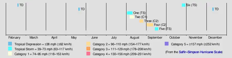 The 1911 Atlantic hurricane season was a relatively inactive hurricane season, with only six known tropical cyclones forming in the Atlantic during the summer and fall. There were three suspected tropical depressions, including one that began the season in February and one that ended the season when it dissipated in December. Three storms intensified into hurricanes, two of which attained Category 2 status on the modern-day Saffir–Simpson Hurricane Scale. Storm data is largely based on the Atlantic hurricane database, which underwent a thorough revision for the period between 1911 and 1914 in 2005.