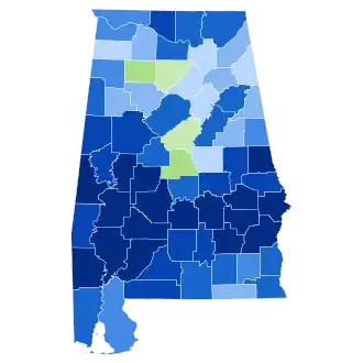 Over the preceding twenty years, Alabama had become effectively a one-party state ruled by the Democratic Party. Disenfranchisement of almost all African Americans and a large proportion of poor whites via poll taxes, literacy tests[1] and extralegal violence[2] had essentially eliminated opposition parties outside of Unionist Winston County and a few other northern hill counties that had been Populist strongholds.[3] The only competitive statewide elections became Democratic Party primaries limited by law to white voters.