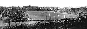 The final game at Nebraska Field was the highest-attended in its fourteen-year existence. The grandstands at the 15,000-seat venue were filled, with an estimated 1,000 additional fans lining fences or climbing atop the wooden awning.[2] Trainer Jack Best, who had served the Nebraska program since its inception in 1890, was in ill health and delivered an emotional pregame speech to the team.[8]