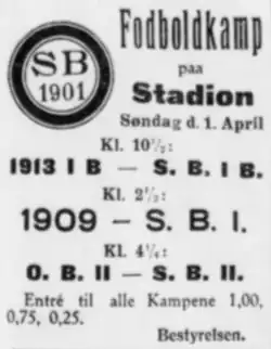 21. ^ "Sporten : S. B. og B. 1909 spillede uafgjort. Med 2 Maal mod 2". Svendborg Avis Sydfyns Tidende (in Danish). 2 April 1928. p. 4.