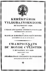 The 1928 UCI Track Cycling World Championships were the World Championship for track cycling. They took place in Budapest, Hungary from 11 to 18 August 1928.[1] Three events for men were contested, two for professionals and one for amateurs.