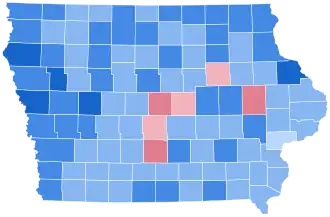 | Keokuk | 5,839 | 62.32% | 3,442 | 36.74% | 88 | 0.94% | 2,397 | 25.58% | 9,369 |
