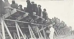 In a departure from his practice of allowing the press to attend Michigan's workouts, Michigan coach Harry Kipke prepared for the game behind locked gates at Ferry Field. The Associated Press reported that "an air of deepest mystery" surrounded the Michigan camp, with expectations that Kipke intended to "shoot the works" against Ohio State.[26] Michigan athletic director Fielding H. Yost predicted the matchup would be "some game" and added, "It won't be a parade of chocolate soldiers."[27] A pep rally was set for Hill Auditorium the night before the game. The Michigan team spent the night at Barton Hills Country Club while the Ohio State team stayed overnight in Dearborn, Michigan.[24] Though Michigan Stadium's official capacity was 75,000, the demand for tickets prompted Michigan's athletic department to build temporary seating around the edge of the bowl. Newspapers and the University of Michigan yearbook reported that the game ultimately drew a crowd of more than 93,000, including 11,000 Ohio State fans.[28][29] Up to that time, it was "the largest crowd that ever saw a Maize and Blue team perform."[30]