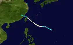 Pearl originated from a tropical depression located south of the Northern Mariana Islands on July 1. Developing into a tropical storm several hours later, further development occurred as Pearl tracked northwards, with it becoming a typhoon the next day. As a result, on July 4, Pearl peaked as a modern-day very strong typhoon with sustained winds of 90 knots (105 mph) Several days later, on July 6, Pearl made landfall 40 miles east of Shanghai, veering to the northwest. Weakening occurred after this landfall, and by the time Pearl struck what is now South Korea, it was a minimal tropical storm. A weakening Pearl tracked northwards before dissipating in Manchuria on July 8.[6]