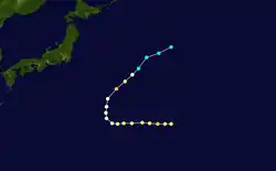 Libby formed southeast of Japan on September 29. The storm moved west as it quickly strengthened into a Category 4 typhoon. It later weakened and turned northeast.