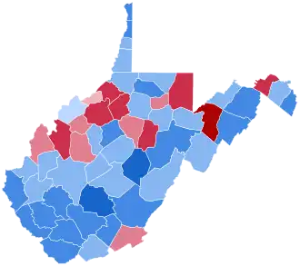 | Wetzel | 4,477 | 57.18% | 3,326 | 42.48% | 26 | 0.33% | 1,151 | 14.70% | 7,829 |