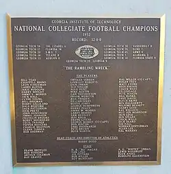 Plaque at Georgia Tech honoring their National Championship season