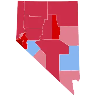 Nevada was won by Columbia University President Dwight D. Eisenhower (R–New York), running with Senator Richard Nixon, with 61.45% of the popular vote, against Adlai Stevenson (D–Illinois), running with Senator John Sparkman, with 38.55% of the popular vote. Eisenhower's vote share was the highest achieved in Nevada by any Republican presidential candidate to that point, although Richard Nixon in 1972 and Ronald Reagan in 1980 and 1984 would eventually exceed Eisenhower's 61.45% vote share. This was the last time that Clark County, home to Las Vegas, did not cast the most votes of any county in a presidential election in Nevada.