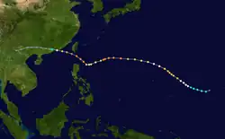On June 25, Kit formed just south of the Philippines. Over the following days, the storm traverses west, then later northwest, having peak intensity on June 29. Kit later starts decreasing speed on July 1, then made landfall in Taiwan on July 3. The next day, Kit settles in China, curving north. The storm stayed in China over the following days, then made landfall on the Korea peninsula on July 5. The storm later makes landfall in Japan on July 7, then dissipated the following day.[6] Because of the storm, strong winds were recorded in Batanes, with widespread precipitation.[7] Other than rain, Kit destroyed a ship and damaged another.[8]
