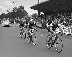- ^ "Zwitserse ploeg verloor twee mantijdens 't matste deel van de strijd: Pardoen had een rijke buit" [Swiss team lost two men in the fattest part of the fight: Pardoen had a rich booty]. Leidse Courant (in Dutch). 7 July 1956. p. 7 – via Historische Kranten, Erfgoed Leiden en Omstreken.