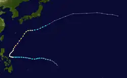 On May 29, Super Typhoon Phyllis attained a peak of 185 miles per hour (298 km/h), the strongest typhoon on record in May at the time.[4] Phyllis remained over open waters, and dissipated on June 2, southeast of Japan.