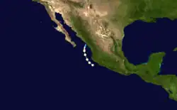 Fernanda formed on September 3 southwest of Guatemala where it moved west-northwest as a category 1 hurricane before dissipating on September 8 southwest of Mexico.[2]