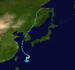 A tropical depression formed on August 6 and was noted by JMA. Over the next few days, it moved north-northwest and strengthened into a tropical storm. It soon weakened and dissipated on August 9.