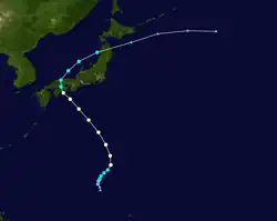 Rose was a short-lived storm that appeared on July 24. It quickly strengthened to a tropical storm. The storm was close to Japan, but didn't make landfall. The storm moved northeast and dissipated on July 21.