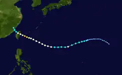 A cold core low developed tropical characteristics and became Tropical Depression 8W on July 6. It tracked westward, becoming a tropical storm later that day and a typhoon on July 7. After briefly weakening to a tropical storm, Clara re-attained typhoon status, and it peaked in intensity on July 10, reaching winds of 115 mph. Clara weakened to a 90 mph typhoon just before hitting Taiwan on the 11th, and it dissipated over China the next day. Clara's heavy rains caused 69 fatalities and a further 32 people to be reported as missing.