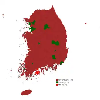 | Korea Independence Party | 240,936 | 2.22 | 0 | 0 | 0 | 0 | ||
