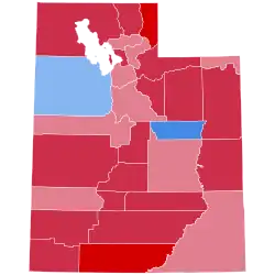 | Utah | 29,226 | 59.01% | 16,629 | 33.57% | 3,666 | 7.40% | 5 | 0.01% | 2 | 0.00% | 12,597 | 25.44% | 49,528 |