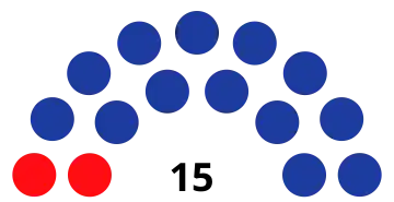Last election 52.82%, 10 seats 44.08%, 5 seats