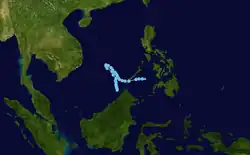 Tropical Depression 05W (Karing) formed east-northeast of the Philippines and traveled north then northwest before dissipating off the coast of China.