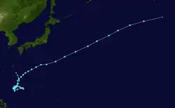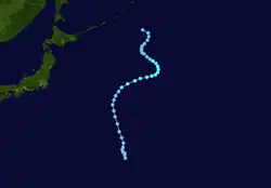 Typhoon Tess was first noted as a closed circulation on 1 September 600 nautical miles east-northeast of Saipan. The storm intensified over the next few days, becoming a typhoon on the 3rd. The cyclone reached its peak intensity on the 4th. Tess then weakened, losing typhoon status on the 8th, and dissipating over the Sea of Irkutsk on the 10th, being absorbed into a frontal system.[3]