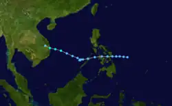 | Susang | September 13 – 19 | Tropical depression | 55 km/h (34 mph) | 1000 hPa (29.53 inHg) | Palau, Philippines, Vietnam | None | None | |
