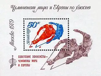 The 1979 Ice Hockey World Championships took place at the Palace of Sports of the Central Lenin Stadium in Moscow, Soviet Union from 14 to 27 April. Eight teams took part, with the first round split into two groups of four, and the best two from each group advancing to the final group. The four best teams then played each other twice in the final round. This was the 46th World Championship and at the same time, the 57th European Championship. In the May 1978 congress many rules were aligned with NHL practices and archaic rules (like changing ends half way the third period) were finally officially abandoned.[1] The games were very well attended, setting a record by averaging over eleven thousand spectators per game.