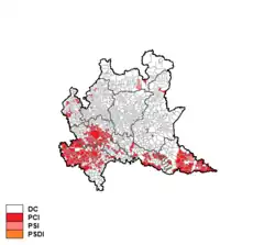 | Province | DC | PCI | PSI | PSDI | MSI | PLI | PRI | DP | PdUP | Total |