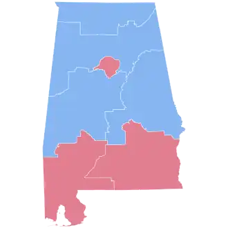 As of the 2024 presidential election, this is the last election in which Limestone County, Morgan County, Marshall County, Talladega County, Cullman County, Tallapoosa County, Bibb County, Randolph County, Henry County, Lamar County, and Clay County voted for a Democratic presidential candidate. This is also the most recent election where Alabama was more Democratic than the nation at-large and where Alabama voted left of several modern-day blue and purple states like California, Connecticut, Illinois, New Jersey, New York, and Pennsylvania.[1]
