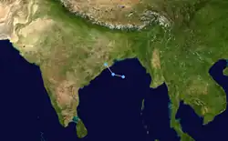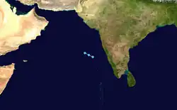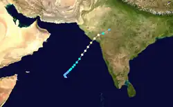 The final storm of the season developed on November 4 in the central Arabian Sea. It tracked northeastward, strengthening into a tropical storm on the 6th and a cyclone on the 7th. The system peaked at 100 mph winds before hitting Veraval, India on the 8th. The cyclone rapidly dissipated, after resulting in 511 fatalities and heavy flooding. Damages were estimated to be 128 crore (equivalent to 24 billion or US$290 million in 2023).
